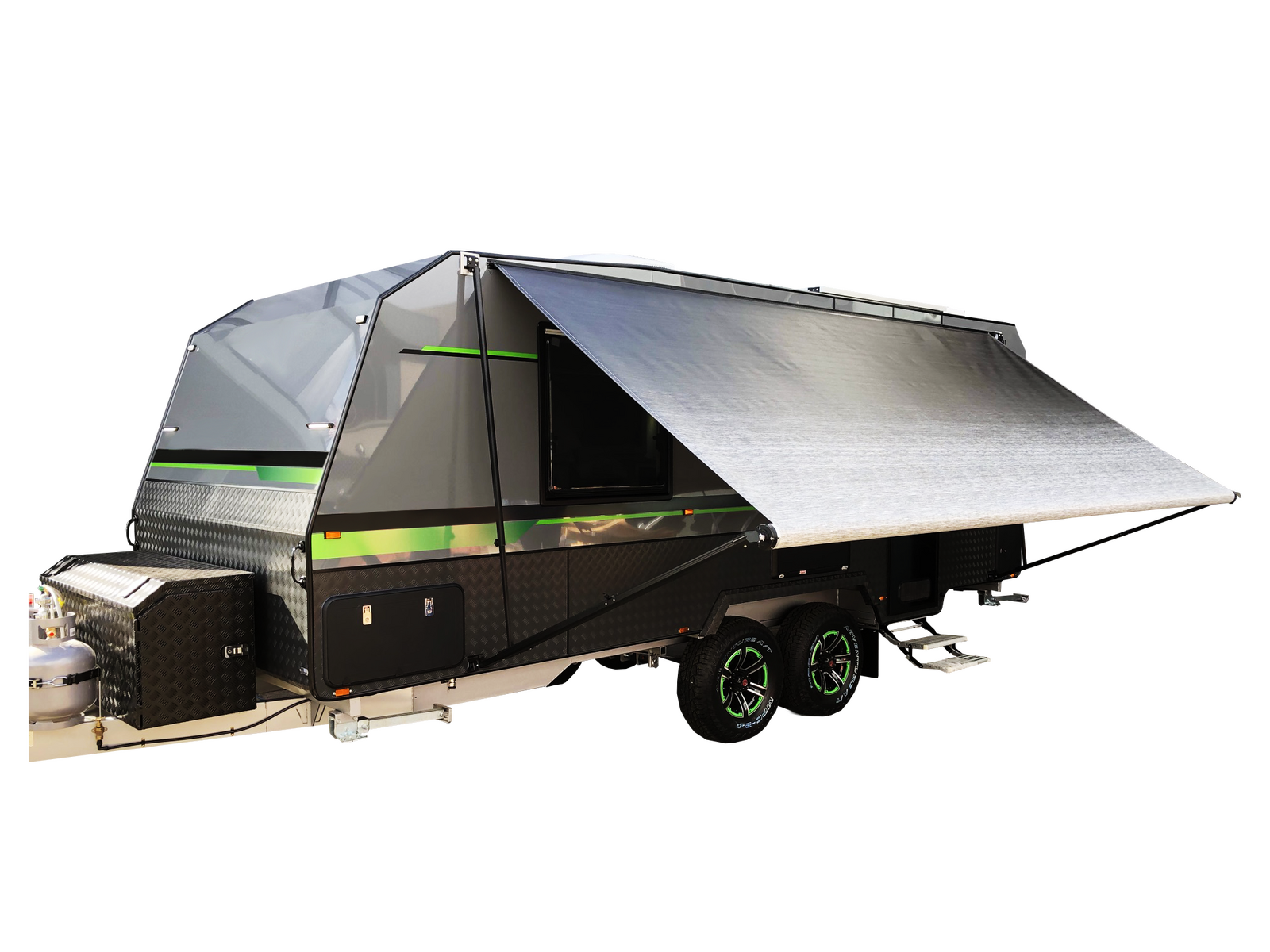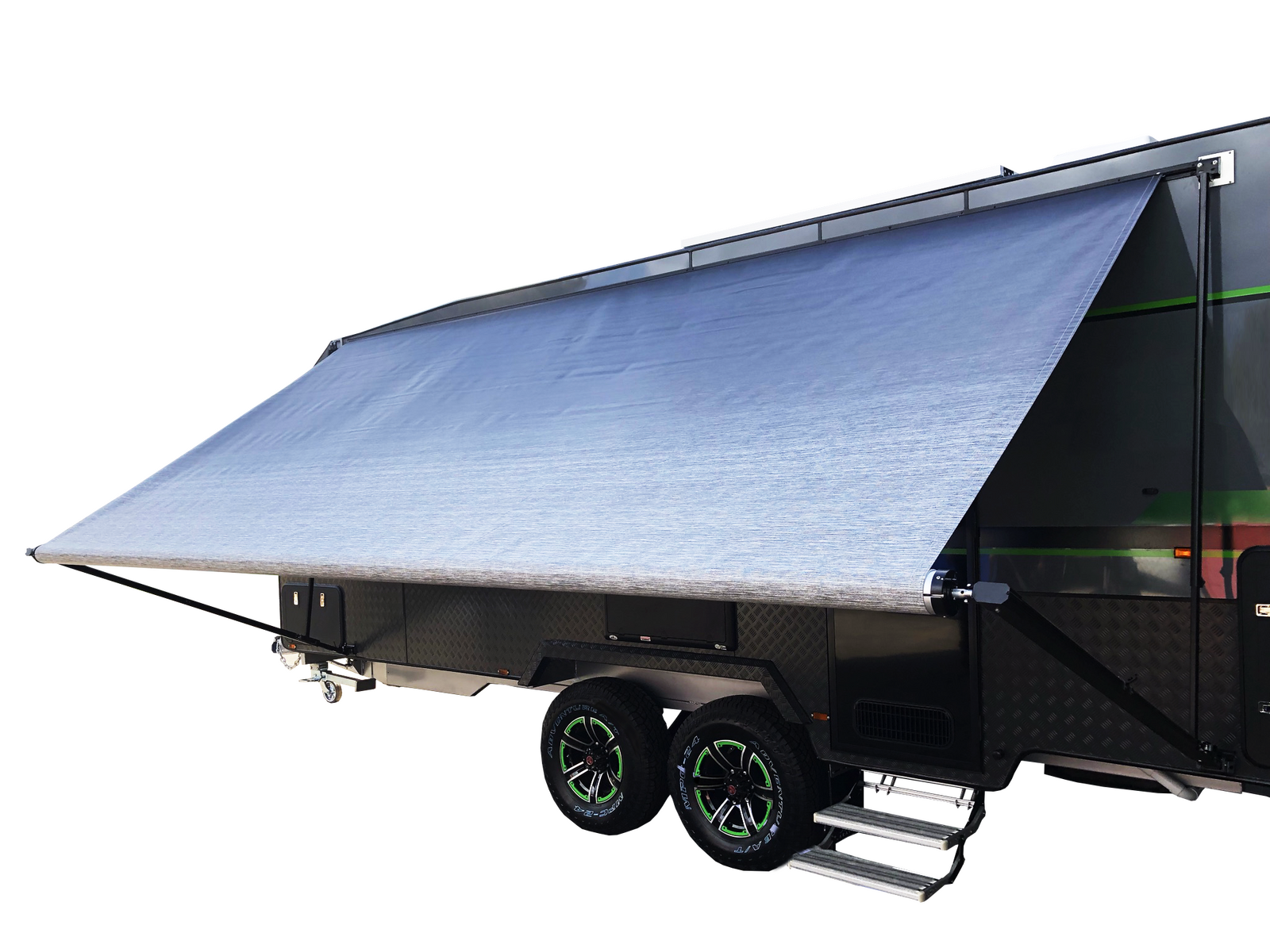 Shade for Australian touring, packed into a fast, manual rollout caravan awning. NCE awnings use a spring-loaded mechanism for quick setup, die-cast frame sets for durability, and UV-treated fabric that helps block harsh sun. Create a tidy outdoor living space beside your full-height caravan or motorhome, without complicated installs.
